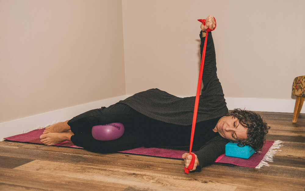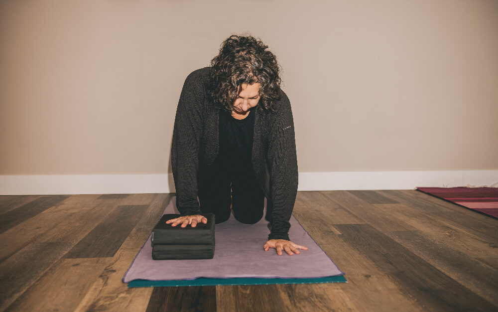Sue Kruszewski (B.Ed., C-IAYT, RYT200) is a yoga therapist, movement educator, energy healer, and the founder of Elemental Motion. She is known for her ability to create spaces that feel safe, authentic, and deeply attuned—where people can listen to their bodies without pressure or force.