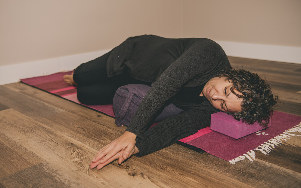 Sue Kruszewski (B.Ed., C-IAYT, RYT200) is a yoga therapist, movement educator, energy healer, and the founder of Elemental Motion. She is known for her ability to create spaces that feel safe, authentic, and deeply attuned—where people can listen to their bodies without pressure or force.